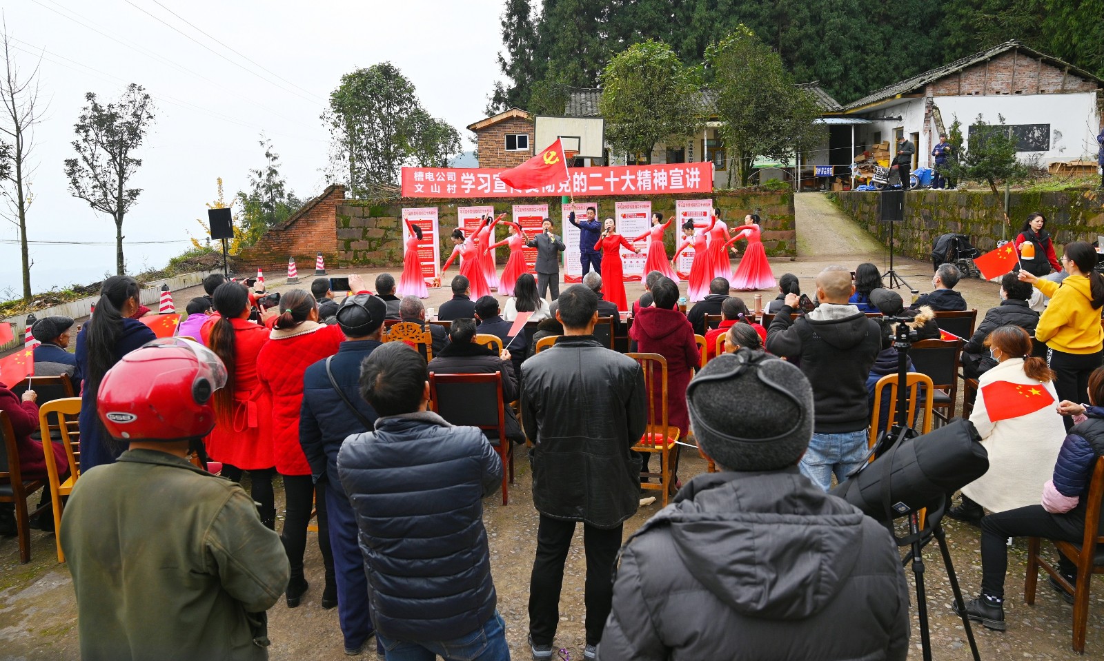 Ô˶¯µ±Ì죬ÎÄɽ´åÃñµô±ÛÑ϶¬ÁÝÙýµÄÁ¹·ç£¬ÔçÔçÀ´µ½ÏÖ³¡ÆÚ´ý¡£ÔÚÒôÀÖ¿ì°å¡¶Ïò×ŵڶþ¸ö°ÙÄê¶·ÕùÄ¿µÄ£¬Ç°½ø£¡¡·ÖÐÀ¿ªÁËÐû½²Ô˶¯µÄÐòÄ»£¬´åÃñÃÇÔÚ¸»ÓÐѬȾÁ¦µÄ¿ì°åÉùÖУ¬ÔÙÒ»´ÎÖØÎÂÁ˵³µÄ¶þÊ®´ó¾«ÉñÒªµã£¬ÎÄɽ´åÃñÑݳöµÄÓµ¾ü»¨¹ÄºÍ¿ì°å¡¶¶þÊ®´ó¾«ÉñÆ×ÐÂÆª¡·Èø÷È˶ÔÖйú¹²²úµ³Îª½â·ÅÈ«ÖйúËùÖ§¸¶µÄÎþÉüºÍÆð¾¢£¬ÐÄ»³Ð»Ð»£¬²¢¶ÔÓÅÃÀµÄδÀ´ÉúÑijäÂúÎÞÏÞÆÚ´ý¡£×îºó£¬È«ÌåÐû½²¶ÓÔ±ÓÃÒ»Çú¸è°éÎè¡¶Á캽¡·½«´Ë´ÎÑݳöÍÆÏòÁËÈȳ±¡£È«Ìå´åÃñΪÐû½²¶ÓÔ±¾«²ÊµÄÑݳöÈÈÁÒÅÄÊÖ£¬Ò²ÎªÕⳡ×ß½øÐæÂäµÄÐû½²Ô˶¯»ÉÏÁËÔ²ÂúµÄ¾äºÅ¡£