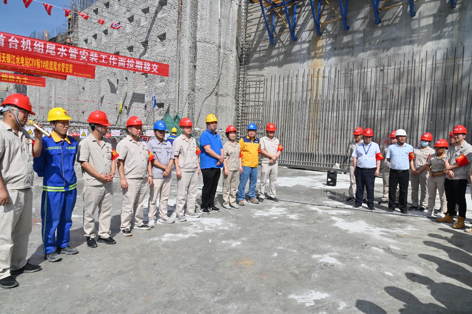5月25日上午,随着1#、2#机组EL965m高程以下事人情整理完成,并在业主、监理见证下,水电五局项目部、广东源天项目部完成事人情书面移交签字,银江水电站厂房和溢流坝工程土建及金结装置标(CIII标)按期完成1#、2#机组尾水管装置事人情向机电装置移交的节点目的。