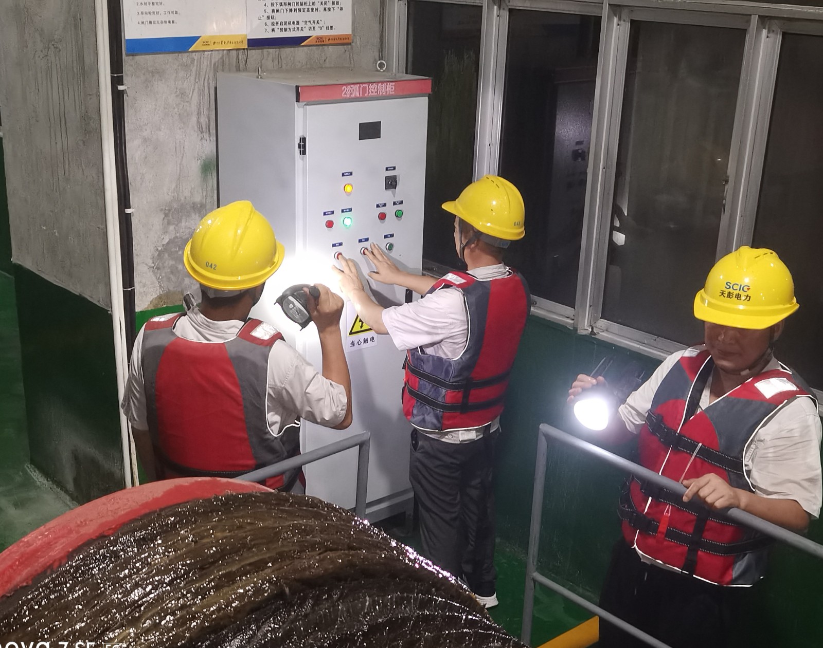汛情就是下令,防汛就是责任,关于天彭电力人来说,这注定是个不眠之夜。公司向导现场指挥,实时处置惩罚种种突发情形,值班职员兵分三路、各司其职,一起驻守控制室,亲近关注雨情、水情转变,作好信息网络和转达;一起前往防汛重点部位举行巡视检查,确保装备设施运行正常;一起做好应急抢险准备。