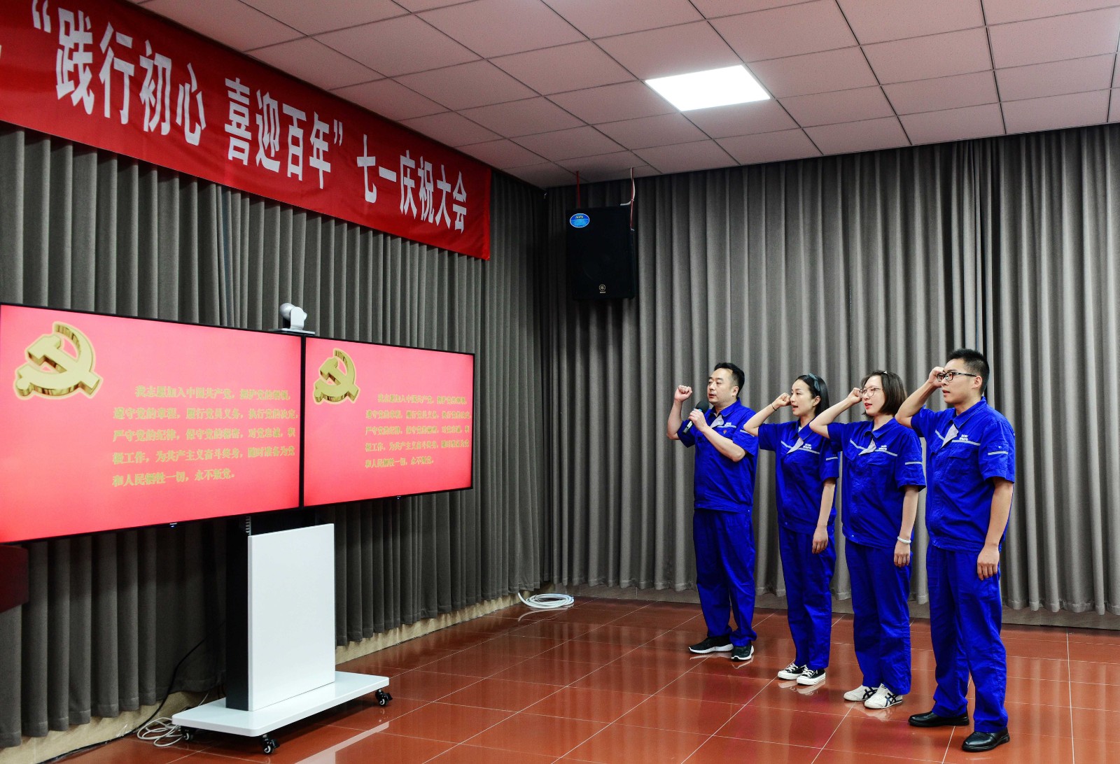 Çì×£´ó»áÔÚÐÛ׳µÄ¹ú¸èÉùÖÐÕýʽ×îÏÈ¡£´ó»áÊ×ÏÈÓɹ«Ë¾µ³Î¯Êé¼Ç¡¢¶Ê³¤ÑîÌÎÏòµ¼ÈýÃûе³Ô±ÔÚÏʺìµÄµ³ÆìϾÙÐÐם֨µÄÈëµ³ÐûÊÄ£¬²Î»áµÄÈ«Ìåµ³Ô±Ò²ºÍе³Ô±Ò»ÆðÖØÎÂÁËÈëµ³ÊÄ´Ê¡£Ê±¿ÌÌáÐÑÎÒÃÇҪʼÖÕ¼á³Ö¹²²úµ³Ô±²»Íü³õÐÄ¡¢ÇмÇʹÃüµÄÓÅÒìÆ·ÖÊ¡£